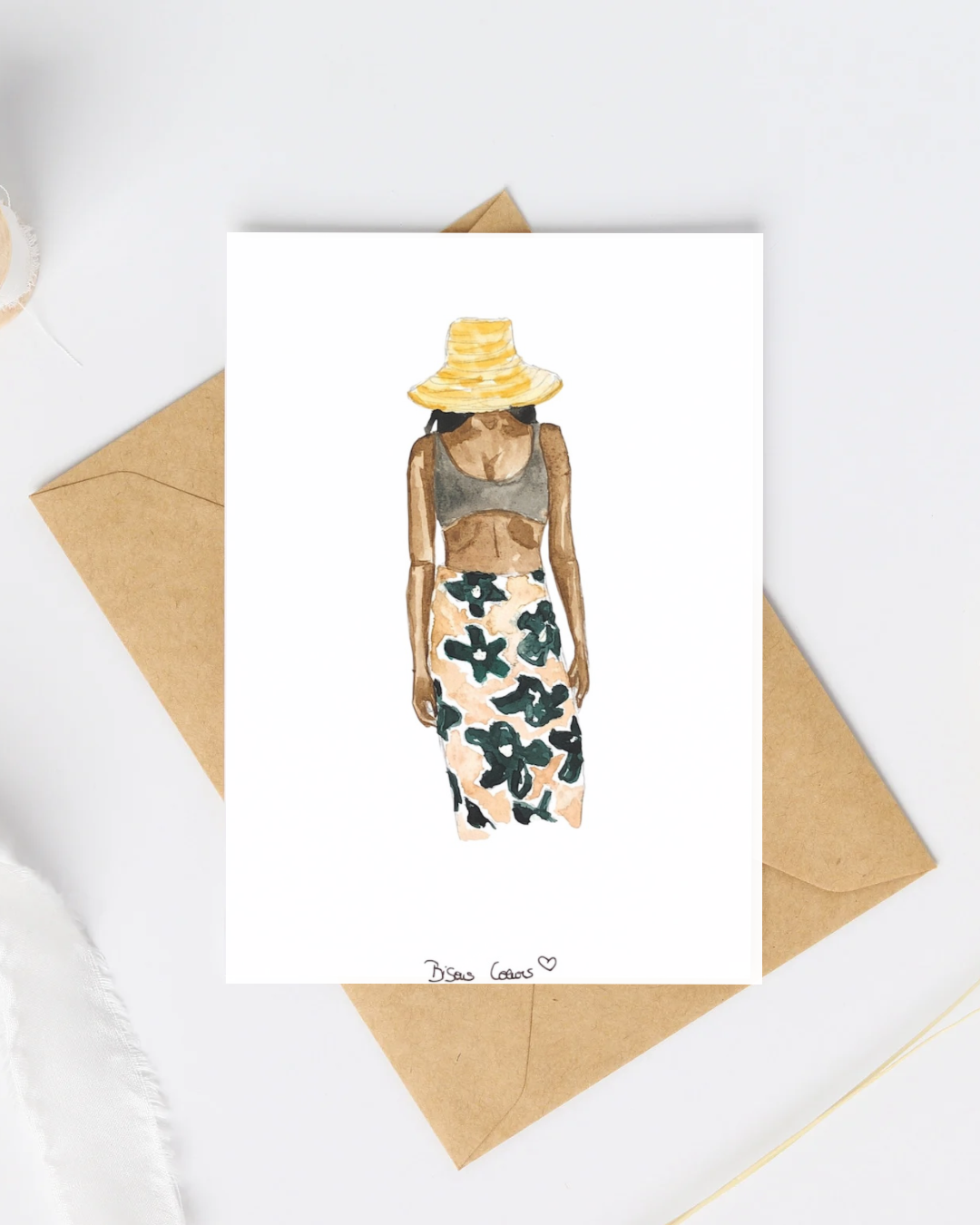 Carte postale fille en jupe fleurie