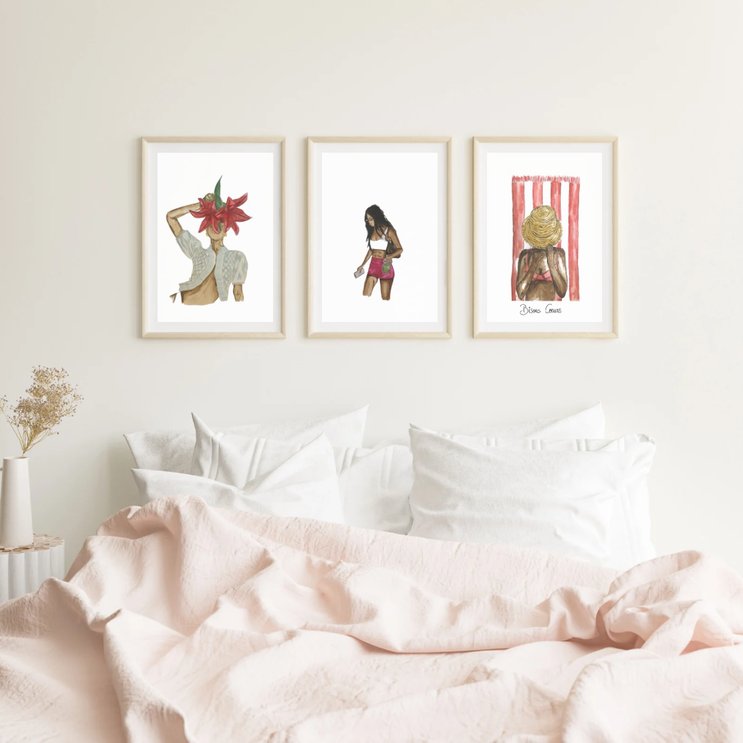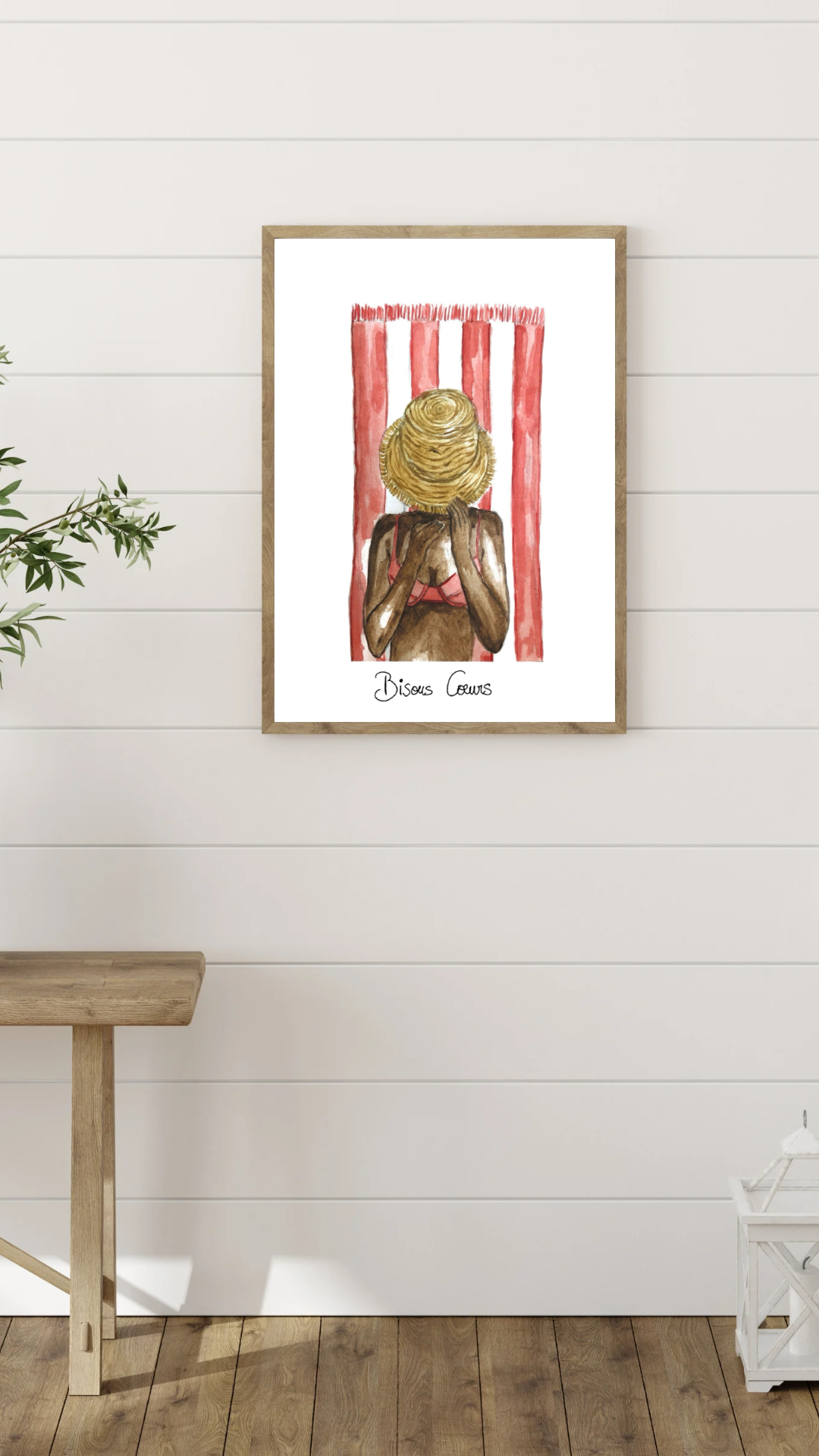 Pause ensoleillée, allongée sur sa serviette, chapeau de paille sur la tête, elle respire la détente et la douceur de l'été.